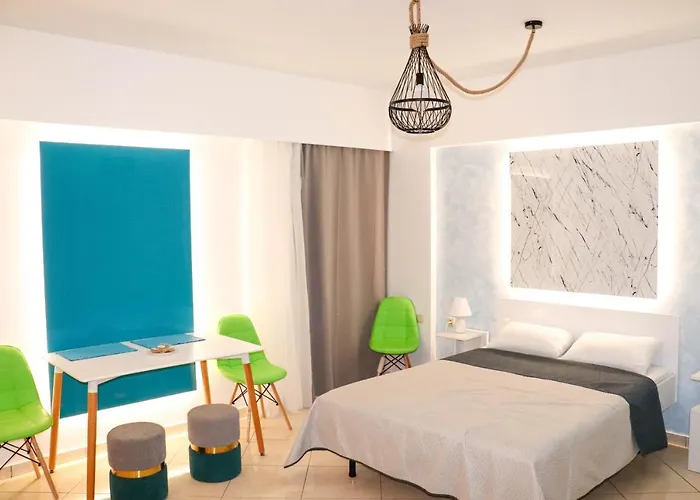 Das Apartment The Sky Yard Eclectic Studios liegt ungefähr 2 km vom Strand Ixias Strand entfernt und verfügt über einen Patio und eine Sitzecke. Dieses Apartment bietet Ausblicke auf die Terrasse.